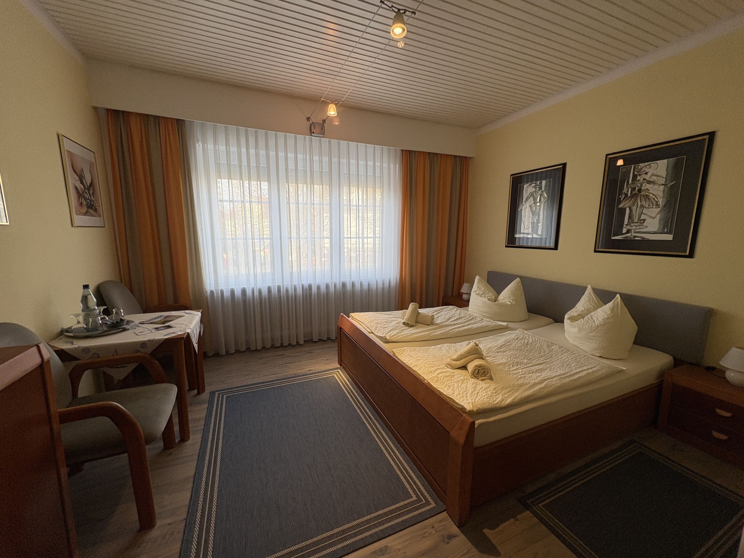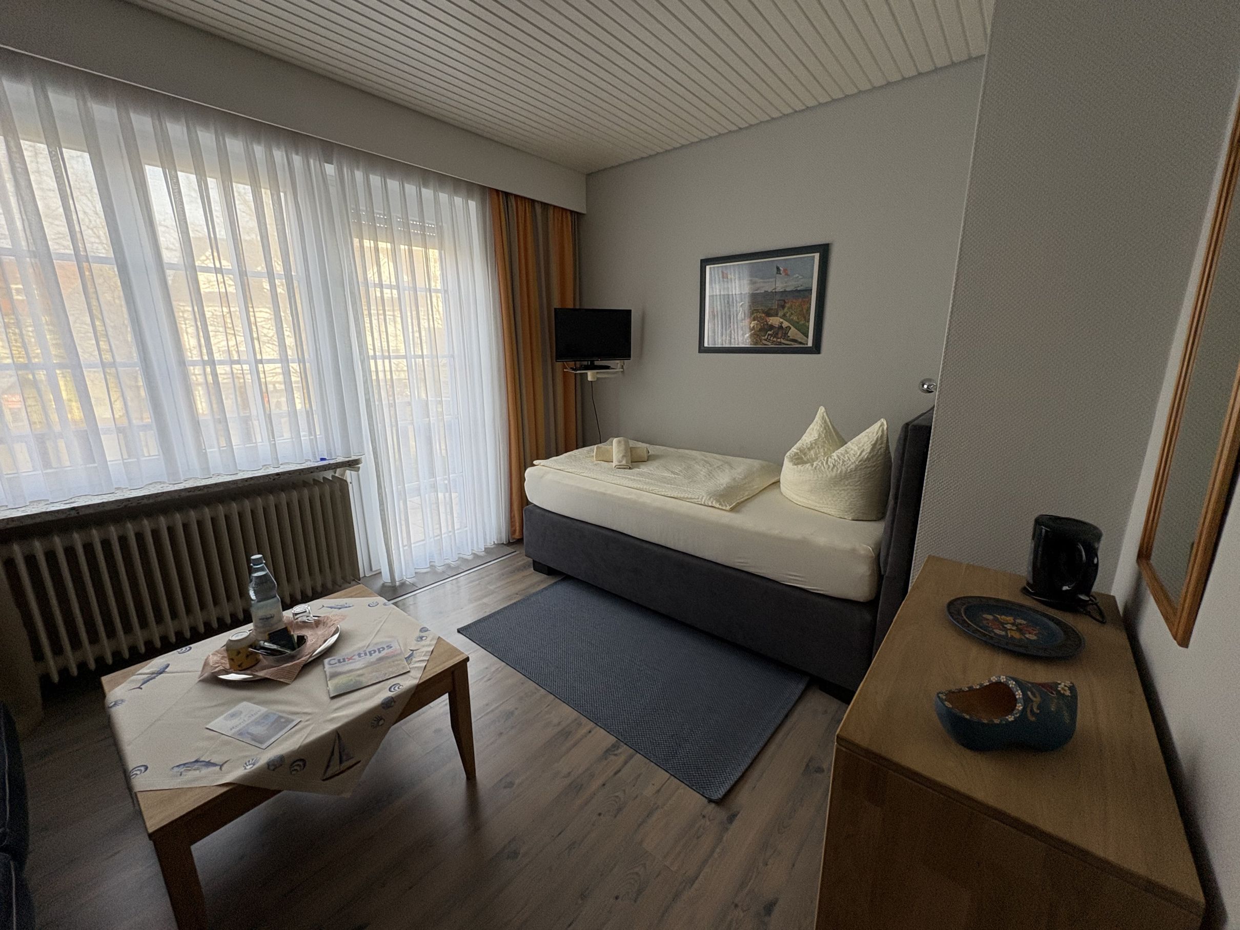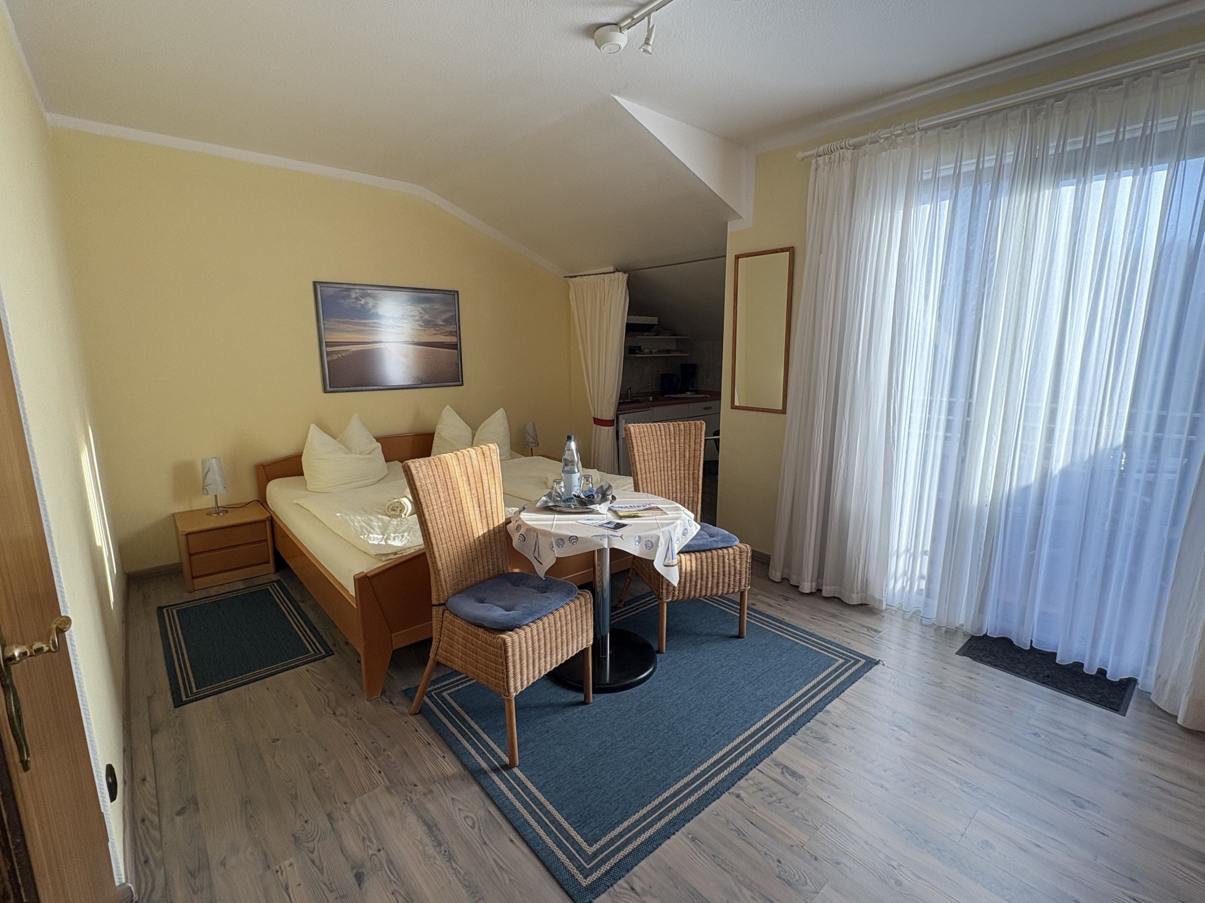 Helle freundliche Farben und Stoffe ergeben ein Ambiente zum Wohlfühlen und alle Zimmer sind so eingerichtet damit der Komfort nicht zu kurz kommt. Alle zehn Doppelzimmer und Einzelzimmer sind mit Dusche/Bad und WC, Kabelfernsehen, Selbstwähltelefon, Radio, Kühlschrank - teilweise Balkon und Pantryküche ausgestattet. Vier unserer Zimmer verfügen über Seesicht. Ein Parkplatz steht unseren Gästen hinter dem Haus kostenlos zur Verfügung.